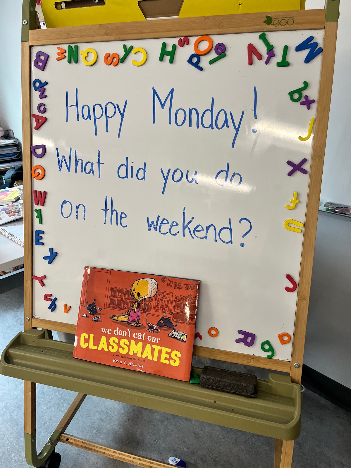 Happy Monday! As a mom, I ask my kids what they did at school and they always say, "I don't know." That is why I think our blogs are so cool. I know that some are you could be curious to see how our days actually go. Here are some of the basic routines that we do every day.